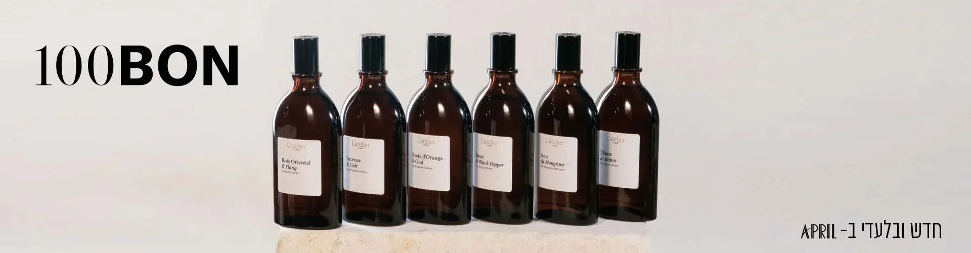 100BON הוא מותג בישום צרפתי פורץ דרך, אשר נוסד מתוך מחויבות להחזיר את הטבע ללב תעשיית הבישום. המותג מציע ניחוחות בני-קיימא, שקופים ונגישים, ללא פשרות על איכות ויוקרה. כל הבשמים במותג מבוססים על פורמולות מאוזנות והרמוניות. סה בון מאגד את מיטב הבשמים לצד חומרי גלם נדירים וממוחזרים, המטרה ליצור חווית בישום ייחודית, אותנטית ומודעת לסביבה. עם מגוון ניחוחות שמתאימים לכל רגע ולכל אדם, 100BON מגדיר מחדש את הבישום - פשוט, מעודן ומלא בקסם טבעי.
