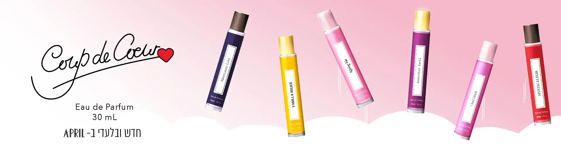 Coup de Cœur הוא מותג בשמים צרפתי המשלב אומנות וחדשנות ליצירת ניחוחות מודרניים, צעירים ומלאי קסם. המותג מתמחה ביצירת בשמים בעלי תווי וניל עדינים ויוקרתיים ומציע בשמים, בשמי מיני ומיסטים לגוף בעלי ניחוח גורמה ורומנטי, שמעוררים את החושים ומעוררים תשוקה. קופ דה קור חוגג נשיות מלאת שמחה, רעננות וסגנון צבעוני, שמלווה אותך בכל רגע בחיים – מהבוקר ועד הלילה – ומאפשר לך לבטא את עצמך במלוא הזוהר והייחודיות שלך!