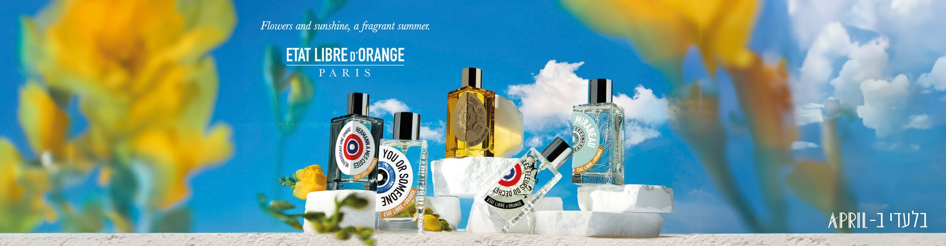 חדש ובלעדי באפריל! המותג Etat Libre d'Orange אטה ליברה ד'אורנג', מותג שאפתני, נועז, משְוחרר, יצירתי, ייחודי, בעל נקודת מבט שונה המתמקד בחופש לאהוב ולהיות נאהב. הוא משתמש באירוניה כדי לחדד את שמות הניחוחות שלו, משחק ברעיונות וממציא מחדש את ההנאות שיש בחוש הריח דרך תווים נשגבים המתמזגים עם העור שמשתייכים רק למי שלובש אותם. הבלנדים מתאפיינים בפיתוי, פריצת הגבולות האסורים, שבירת כללים ומרד! Etat Libere d’Orange (מדינת התפוזים החופשית) הוא בית בישום צרפתי שהוקם על ידי אטיין דה סוורדט בשנת 2006 כשהמוטו המוביל שלו הוא Le parfum est mort, vive le parfum"".
