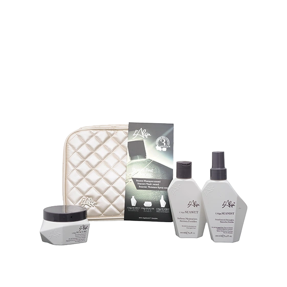 סט המכיל מוצרים מסדרת SEAMORE: שמפו 100 מ"ל, מסכה 100 מ"ל, ספריי אנטי פריז 100 מ"ל בתוך תיק ביוטי מהודר. סדרת מוצרים לשיער חסר חיוניות/מקורזל שצריך לחות ונפח. שמפו ומסכה מסדרת סימור משקמים את השיער והקרקפת על ידי החדרת לחויות ובשילוב ספריי האנטי פריז השיער נראה מבריק ורך ללא קשרים ופריז.