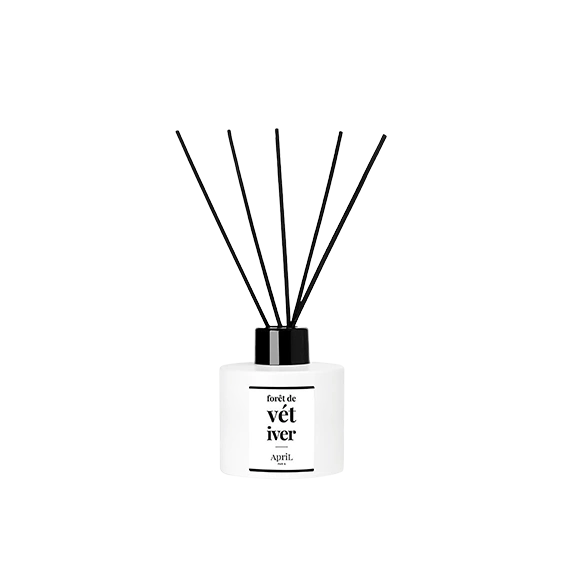 דיפיוזר ריחני מבית April אשר מגיע בכלי זכוכית דקורטיבי ומפיץ משב בישום מרענן ומענג יחד עם אווירה נעימה ושלווה במיוחד.