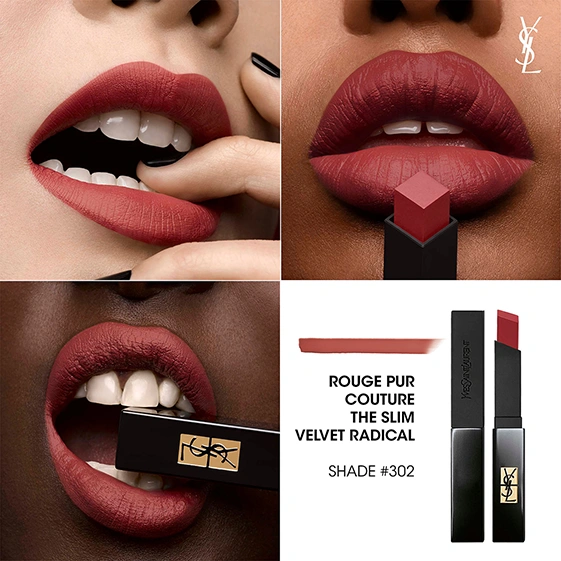שפתון רוז' פור קוטור דה סלים וולוט רדיקל מבית Yves Saint Laurent שפתון בגימור מאט עמיד במיוחד בעיצוב דק עם קצה מרובע שמסייע למריחה מדויקת על השפתיים. בעל מרקם קרמי המעניק כיסוי מלא במגוון גוונים עם פגימנט צבע עשיר וקטיפתי במיוחד.