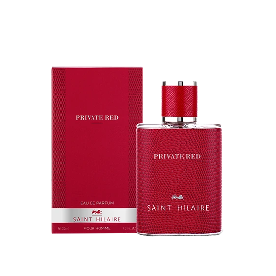 הבושם החדש Saint Hilaire Private Red E.D.P מבית Saint Hilaire בעל ניחוח שובה לב לגברים ג'נטלמנים המעזים, אבל תמיד באלגנטיות. בעל תווים עליוניים של לימון, ג'ינג'ר, לבנדר ומנטה. תווי לב של תפוח, הל, גרניום ותווי בסיס החותמים את הניחוח עם שעועית טונקה, עץ ענבר ווטיבר.