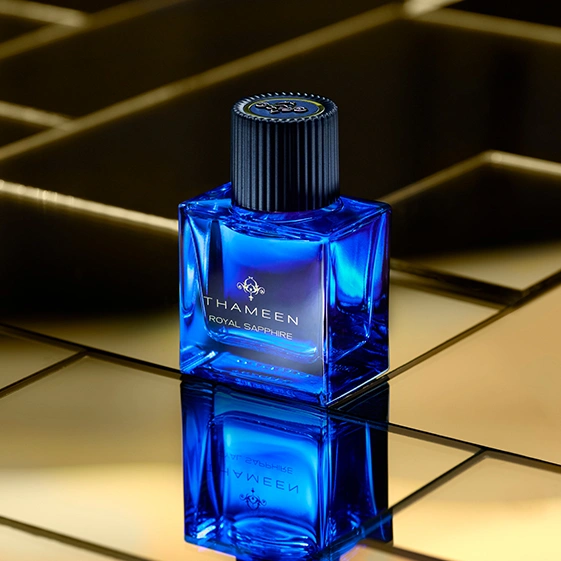 בית הבישום האנגלי ת'אמין שואב השראה מתכשיטים יקרי ערך שבמרכזם יצירות המופת של הטבע - יהלומים ואבני חן. ת'אמין עושה שימוש ברכיבים הטובים ביותר שיש לטבע להציע בכדי לייצר בשמים מפוארים, אלגנטים ונצחיים. שכן בשמים, כמו תכשיטים, יוצרים זכרונות שנשארים לעד. אבני הספיר הכחולות המעטרות את תכשיטי בית המלוכה הבריטי היוו את ההשראה לניחוח. הבושם Royal Sapphire Extrait De Parfum הוא בעל ניחוח המשלב בעדינות תווים עליוניים של תפוז ברגמוט ומנדרינה. תווי לב של פריחת התפוז ויסמין, ותווי בסיס של אמבר, אזוב אלון פצ'ולי ותמציות עץ, המשחזרים את יופיים המהמם של תכשיטי הכתר.