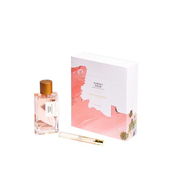 סט סנסט אוור א.ד.פ, מבית Goldfield & Banks, מכיל את הבושם החדש סנסט אוור פרפיום של המותג Goldfield & Banks בניחוח האומנות והטבע המתכנסים יחד ליצירה של ניחוח, הלוכדת את היופי והשלווה הטבעיים של בין הערביים. כשהשמש שוקעת, ניחוחם של פירות הדריים מקומיים, מעניקים לנו מגע של אלגנטיות פרחונית עם חיבוק חושני של אקורד עצי, המעורר את הזוהר העדין של אור השקיעה. 100 מ"ל. וגודל נוסף מוקטן של הבושם. 10 מ"ל.