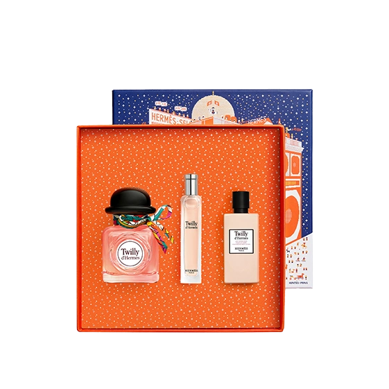 הסט טווילי ד'הרמס א.ד.פ , מבית Hermès, הוא חגיגה בקופסא מהודרת של עולם צבעוני, תוסס ונועז שמתעורר לחיים על רחבת הריקודים. מתנה עם ניחוח שובב, למישהי אהובה או לעצמך ובמהדורה מוגבלת. הסט מכיל את הבושם Twilly d’Hermès Eau de Parfum בניחוח פרחוני-מתובל עם שילוב נועז של ג’ינג’ר רענן, טוברוז קליל ועץ סנדלווד חלבי. בושם שנולד מתוך השראה מנשים צעירות - חופשיות, חצופות, בלתי צפויות ומלאות חיים. 85ML וגם TRAVEL SIZE 15ML. קרם לחות לגוף בניחוח הבושם טווילי ד'הרמס א.ד.פ. 80ML . הניחוח מחדש את המרכיבים הקלאסיים עם טוויסט: הג'ינג'ר הופך לפיקנטי, הטוברוז מפתיע, והסנדלווד מקבל עומק חושני. את הכול עוטפת סרט משי צבעוני שנקשר ביד וכל בקבוק הוא יחיד ומיוחד.
