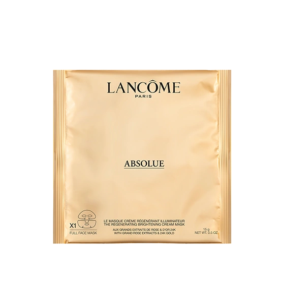 מסכת הבד החדשה Golden Cream Mask מסדרת אבסולו של Lancome במרקם קרם לחידוש והענקת זוהר למראה העור המכילה תמציות ורד לנקום ו-24 קראט זהב מדובר בפורמט חדשני, בו המסיכה מצופה בקרם האייקוני Absolue Soft Cream, המספק לעורך כמות זהה לזו הנמצאת בצנצנת 15 מ"ל. מהשימוש הראשון, מראה העור מוזן, מלא בנפח ומואר באופן הנראה לעין