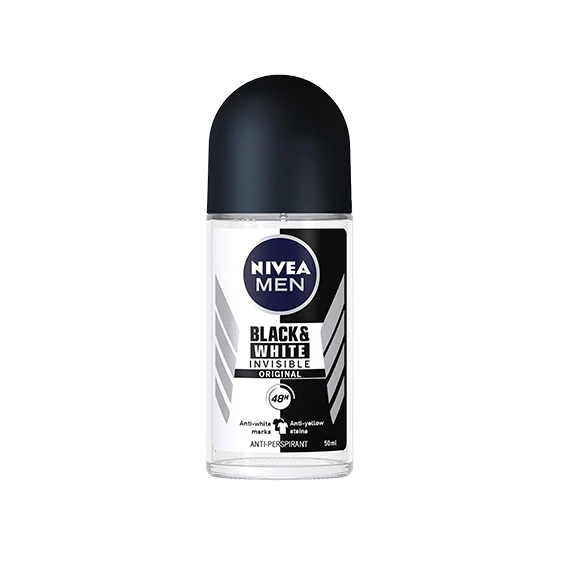 ניוואה דאודורנט רול-און בלאק אנד וויט לגבר. לקבלת הגנת דאודורנט שאי אפשר לראות, אבל ניתן להרגיש. הנוסחה היעילה מגנה מפני כתמים צהובים על בדים לבנים וכתמים לבנים על בדים כהים. מספק הגנה מפני רטיבות בתי השחי וריח הגוף - למשך עד 48 שעות. מאושר דרמטולוגית.