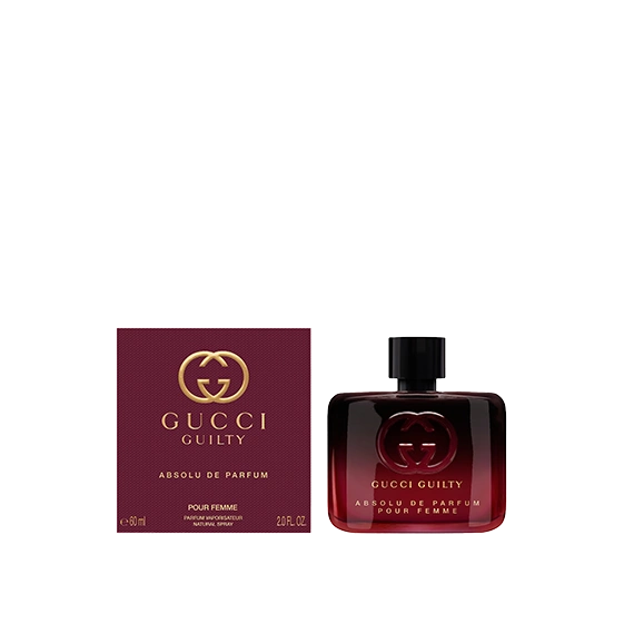 הבושם גוצ'י גילטי אבסולו דה פרפיום מבית היוקרה Gucci, הוא בושם לאישה השייך לסדרת הבשמים Guilty. הניחוח נפתח בתווים עליוניים של שקד וברגמוט. תווי הלב של פצ'ולי, ויסטריה חמים וחושני וורד. תווי הבסיס הם תמציות קפה, וניל וקקאו, אליהם מצטרפת טונקה אבסולוט מתוקה. הניחוח שייך למשפחת הריח פרחוני גורמה, העוטף את הלובשת אותו בהילה של עוצמה נשית ותשוקה.