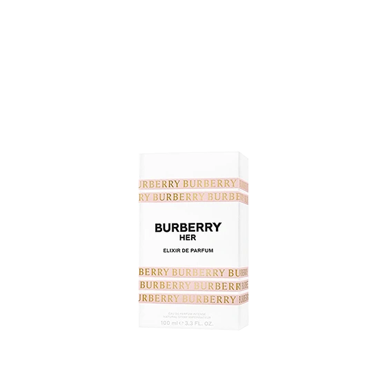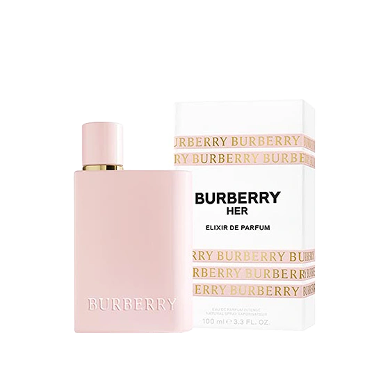 הבושם החדש Her Elixir E.D.P מבית Burberry כולל תווים פירותיים ייחודיים לצד פרץ נועז של גרגרי יער אדומים כהים עם יסמין, ומסתיים בניחוחות וניל וענבר חושניים וממכרים. האו דה פרמיום החדש מיועד לנשים המעזות לחקור את הלא נודע, ומתאפיינות ברוח חופשית המחפשת את הריגוש של ההרפתקה הבאה. מסע הפרסום שצולם על ידי מריו סורנטי מציג גרסה חדשה מיתית וסוריאליסטית של האישה המודרנית העפה מהנוף העירוני הריק עם עלות השחר, במרדף אחר הרפתקה חדשה ורבת עוצמה. הבושם מעמיק את הגוון הורוד עם גימור אטום המייצג את עוצמת הבושם המצוי בתוכו, ואת רוח הביטחון העצמי והחושניות שלו. מאפייני העיצוב החיצוני כוללים את האותיות של ברברי בבסיס, בדומה לבשמים הקודמים של סדרת הבשמים לנשים.